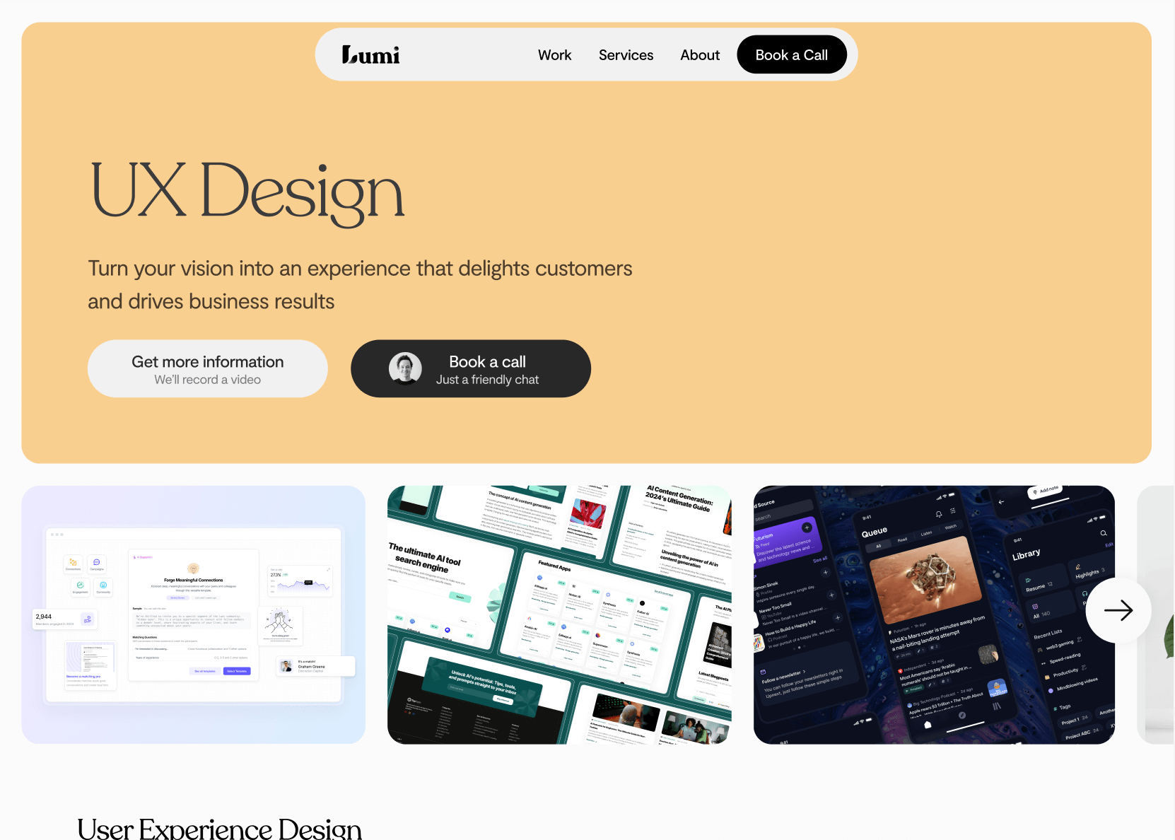 - Lumi Studio: Unique strategic process transforms ideas into acquisition-ready products in weeks, not months – complete product vision, functional prototypes, and growth-driven design from founders who've been where you are